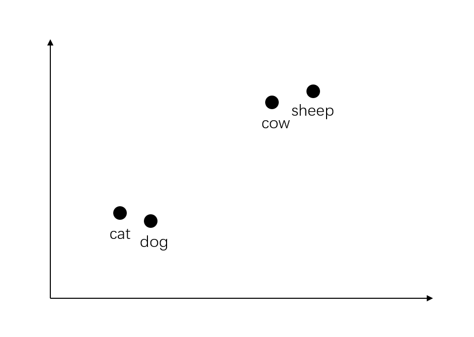 Suppose we are calculating a text that contains a total of four words: cat, dog, cow, sheep. Each position in the vector represents a word.
